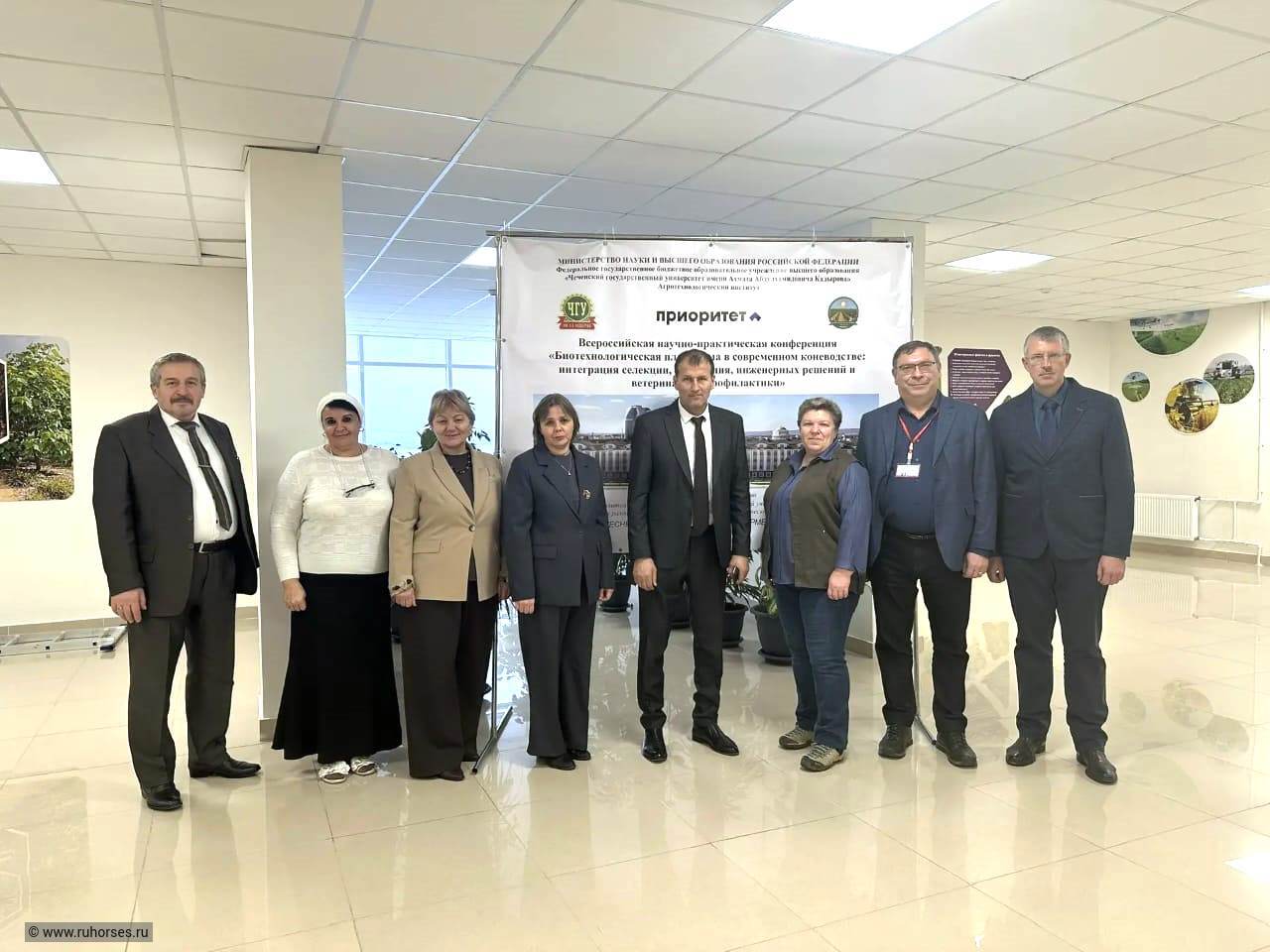 5 декабря 2025 года в ФГБОУ ВО «Чеченский государственный университет им. А.А. Кадырова» Агротехнологический институт (г. Грозный) прошла Всероссийская научно-практическая конференция «Биотехнологическая платформа в современном коневодстве: интеграция селекции, кормления, инженерных решений и ветеринарной профилактики».В конференции с устными докладами приняли участие учёные из ФГБНУ «ВНИИ коневодства имени академика В.В. Калашникова». Прозвучали доклады директора института, к. с.-х. н. Александра Михайловича Зайцева, зав. отдела селекции, к. с.-х. н. Галины Владимировны Калинкиной, зав. лабораторией криобиологии, к. б. н. Михаила Михайловича Атрощенко, н.с. отдела селекции, к. б. н. Марины Викторовны Адамковской и с.н.с. отдела селекции, к. с.-х. н. Анны Вячеславовны Борисовой.На конференции прозвучало большое количество интересных докладов, сделанных студентами и молодыми учёными ФГБОУ ВО «Чеченский государственный университет им. А.А. Кадырова» Агротехнологический институт, по коневодству, исследованиям в области селекции, ветеринарии, воспроизводству, кормлению лошадей.Так же в ходе рабочей поездки сотрудники института коневодства посетили ипподромы в городах Грозный и Шали.Особую благодарность учёные и руководство ФГБНУ «ВНИИ коневодства им. академика В.В. Калашникова» выражают Магомадову Анди Султановичу – директору Агротехнологического института ФГБОУ ВО «Чеченский государственный университет им. А.А. Кадырова» и коллективу преподавателей ВУЗа за тёплый приём, интересную и познавательную конференцию, а также знакомство с научно-исследовательской работой института.